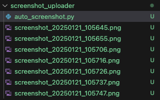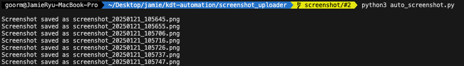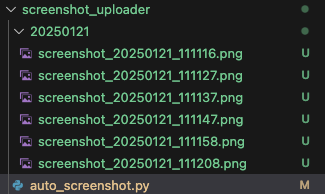 time.sleep(interval)날짜별로 폴더를 생성하고, 해당 폴더 안에 캡쳐된 파일을 저장한다. 20250121 폴더가 새로 생겼다.