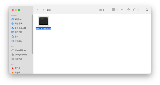 pyinstaller --onefile --windowed --name "Auto Screenshot" auto_screenshot.py하지만, 위의 명령어는 기존 .spec 파일을 덮어쓸 수 있어, 직접 파일을 지정하여 pyinstaller 명령어를 실행하도록 설정했다.