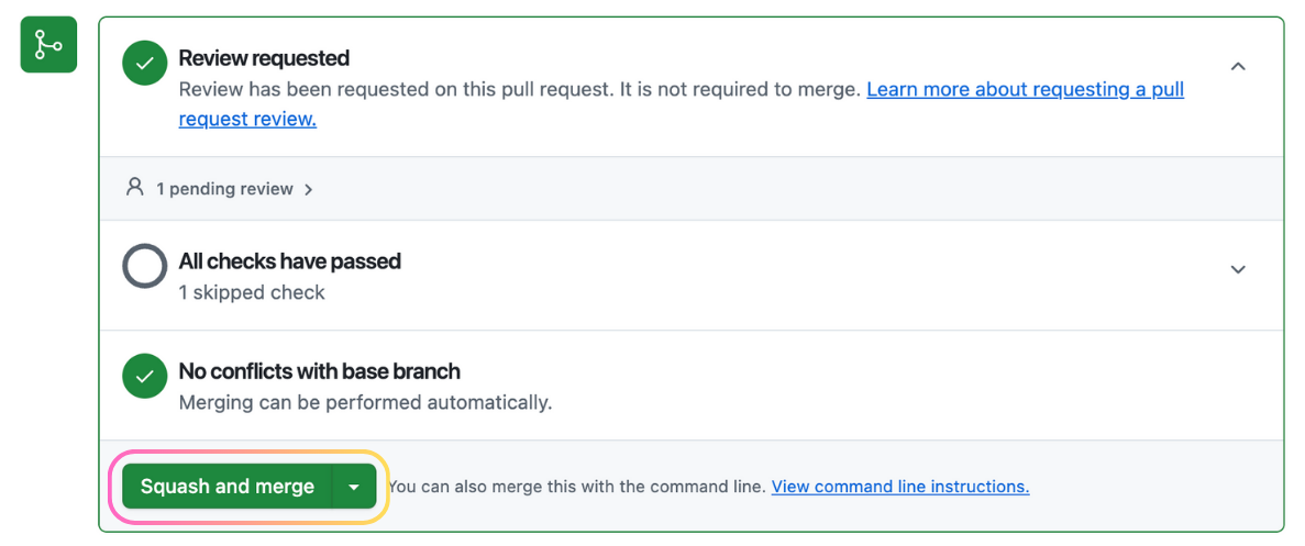그동안은 별생각 없이 PR 페이지의 Merge pull request 큰 버튼만 눌렀는데, 이번엔 Reviewer가 squash로 머지해달라고 말씀을 해주셨어요.